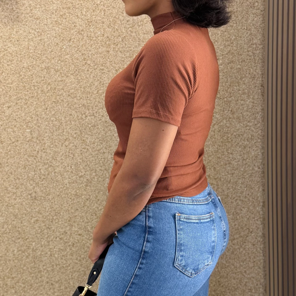 A combinação perfeita entre conforto e elegância! Nossa blusa de gola alta em malha canelada marrom realça a silhueta e traz um ar sofisticado ao visual do dia a dia.