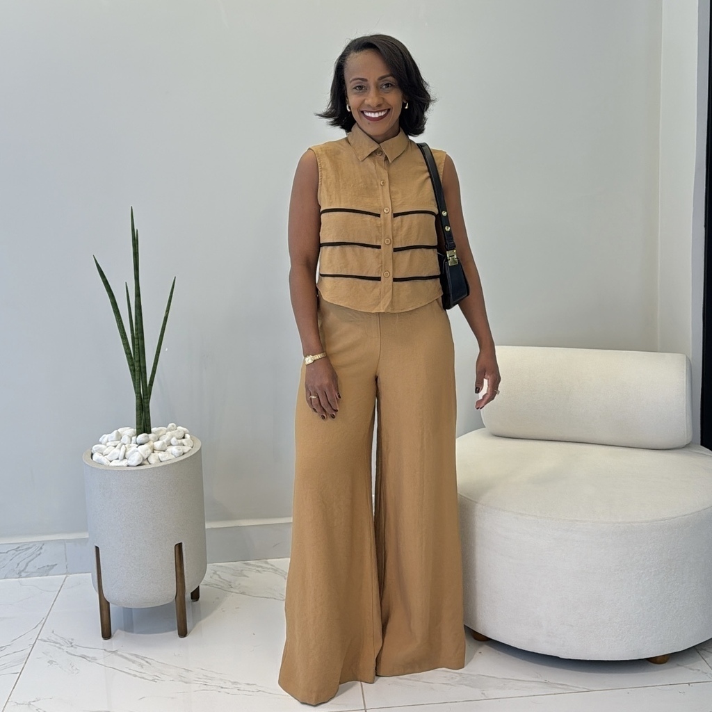 O detalhe das listras traz um toque contemporâneo e exclusivo,perfeito para quem gosta de estar bem-vestida em qualquer ocasião.